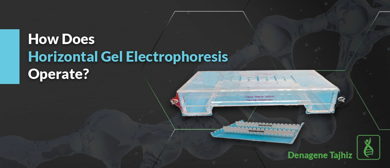 Horizontal gel electrophoresis involves casting a gel horizontally and placing it in a chamber divided into two sections. The gel is positioned between a positive charge at one end and a negative charge at the other, created by a continuous running buffer. When an electric current is applied, the charged molecules in the samples migrate through the gel towards the opposite charge, separating based on their size and charge.